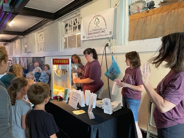 TRI actively supports downtown Titusville through coordinated volunteer cleaning of the historic walking tour panels, serving free popcorn at Titusville Council on the Arts’s Monday Night Concert series, decorating community cornerstones like the Victorian Clock at Fleming Park, running “shop local” promotions for downtown businesses, and applying for grants for TAP-driven public art & branding projects.